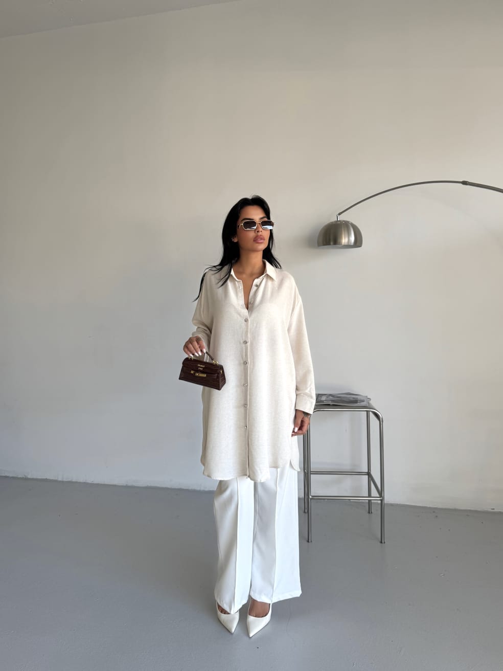 – Gömlek yaka tasarımı ile klasik ve zamansız bir görünüm sunar. – Uzun kollu yapısı, mevsim geçişlerinde ideal bir tercih haline getirir. – Trend ortamlarda şıklığınızı tamamlayacak modern kesimiyle dikkat çeker. – Pratik düğmeli kapama şekli, kolay kullanım sağlar ve şık detaylar ekler. – Düz deseni sayesinde farklı aksesuarlarla kolayca kombinlenebilir. – Tüm sezonlarda rahatlıkla tercih edebileceğiniz çok yönlülükte bir parça. – Kadın ve kız kullanıcılar için ideal, genç yaş grubuna hitap eden tasarım. – Türkiye menşeli olmasıyla yerel üretim kalitesini yansıtır. – Keten kumaşı sayesinde hafif ve nefes alabilen yapıda konforlu bir deneyim sunar. – Bol kalıbı ile gün boyu rahat hareket etme özgürlüğü sağlar. – Midi boyu ile hem günlük hem de özel günlerde şık bir duruş sergiler.