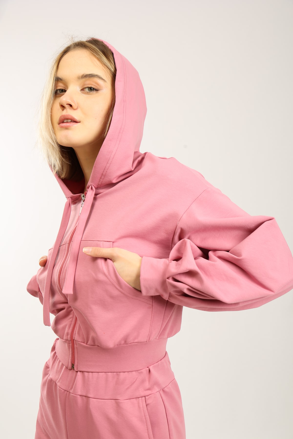 Kol Ağzı Pileli Fermuarlı Eşofman Takımı
